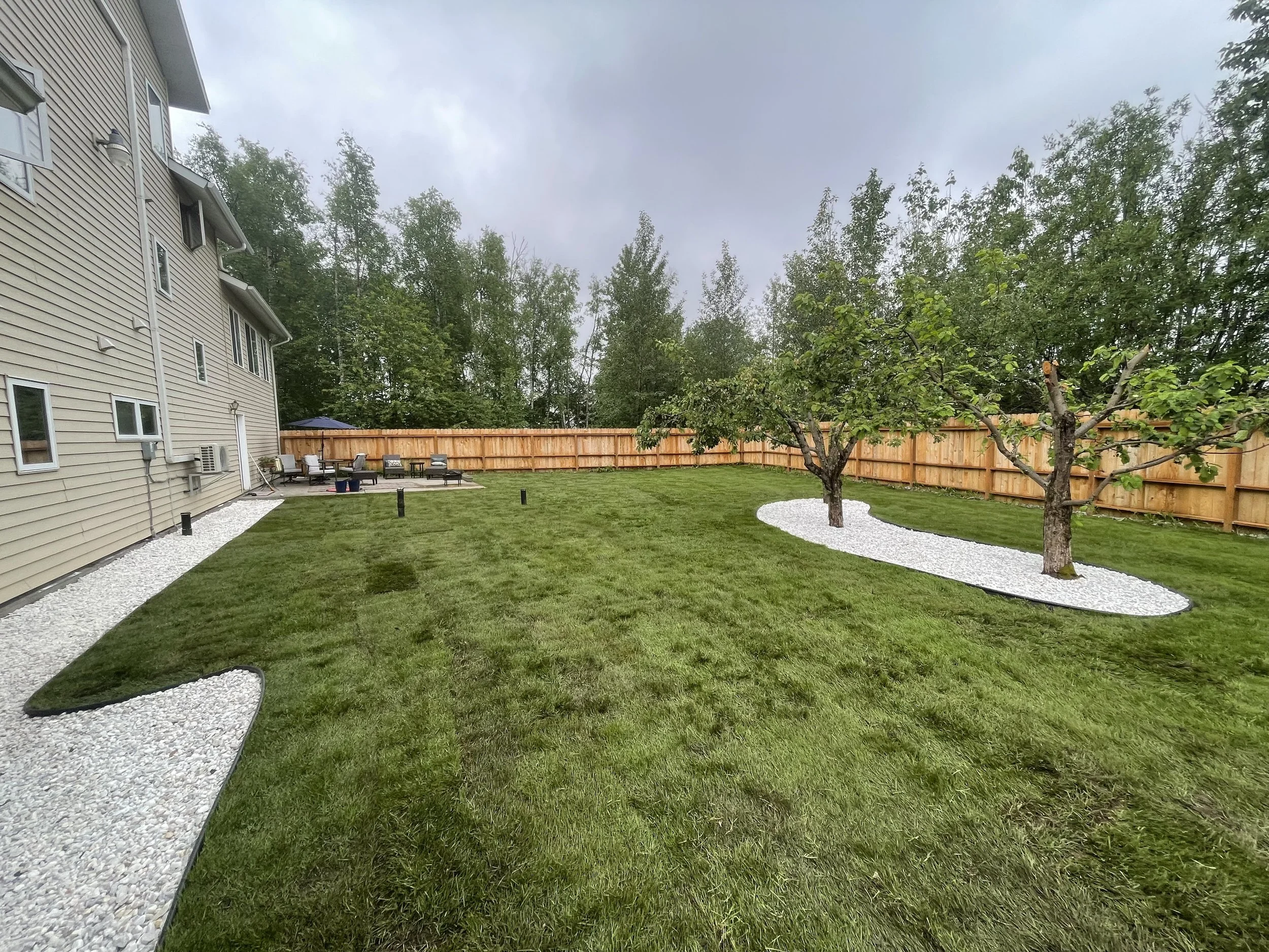 Backyard patio and new lawn installation from Walker Landscapes in Alaska.